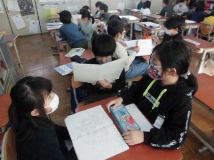 国語科の学習で、「お話のさくしゃになろう」という学習に取り組んでいます。これまでたくさんのお話を読んできましたが、今回は自分が作者となり、どんな人物が出てきて、どんなことが起こると楽しいかを考えています。友だちと話し合い、人物について考えたり、どうすればお話がおもしろくなるのか、相談しあったりしています。