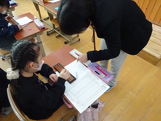 2日続けて珠算教室がありました。1回目の復習をした後、簡単なたし算、ひき算、かけ算の計算の仕方を教えていただきました。