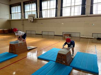 3学期から跳び箱に挑戦しています。最初は「跳び箱が苦手」と言っていた児童も粘り強く練習し、上達していっています。この調子でどんどんできる技を増やしていってほしいです。