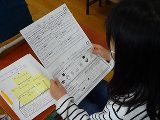 早速、子どもたちはいただいた意見をもとに自分で考えをまとめ直したり、友だちと交流してよりよい笑顔プランを考えたり、2月の学習発表会と1年のまとめに向けて、よく頑張っています。