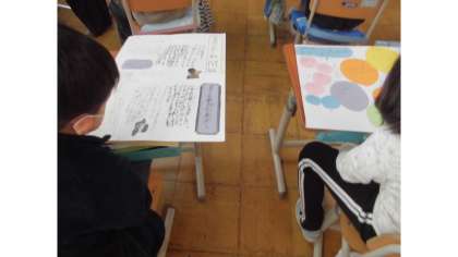 学習発表会に向けて、生活科「広がれわたし」の学習で、インタビューしたことや友だちに見つけてもらったいいところなど、調べて分かったことの中から、みんなに伝えたいことを新聞やポスター、巻物、絵本などにまとめ発表の練習をしています。どうしたら伝わりやすいのか一生懸命に考えながら取り組んでいます。子どもたちは、学習発表会に向けて張り切っています。是非ご参観ください。