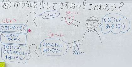 子どもたちからは、「先に約束があるねん」「今日はダメやねん…また遊ぼう」など相手を傷つけない断り方などが出ました。人とのかかわり方を学んだ大切な時間になりました。