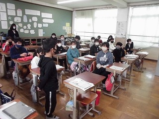 5年生の発表が終わり、6年生の発表を聞く側になって、「清水寺の季節で様子が変わるのがとてもよかった。」「(6年生の発表の中に)初詣に行く寺があったけど、さらに魅力が分かってよかった。」「知らないところがたくさんあったけど、実際に行ってみたい。」といった感想を自分から手を挙げて積極的に発表することができました。