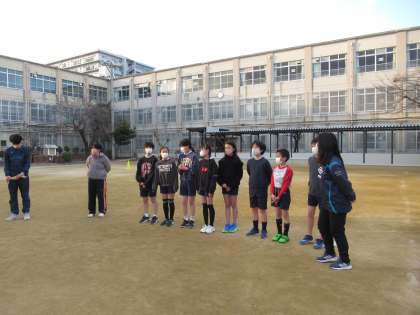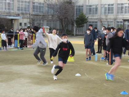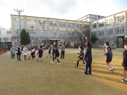 学年末が近づき、部活動では順にお別れ試合を実施しています。水曜日は、総合運動部と陸上部・バレーボール部でお別れ試合を行いました。6年生チーム対教職員チームで、白熱した勝負を楽しみました。