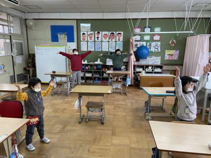 東総合支援学校との交流に向けて子どもたちと準備を進めています。今日は当日に楽しむ歌やリトミックの練習を行いました。一緒に楽しめるよう身体をたくさん動かして練習しました。