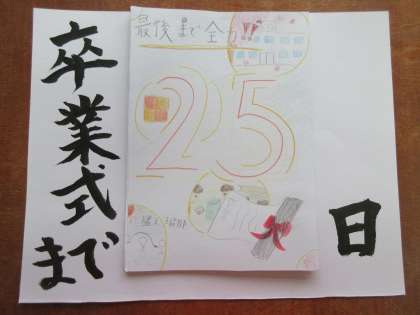 6年2組では、子どもたちの提案で卒業式までのカウントダウンを始めることになりました。カウントダウンのカードは、ひとりひとりが心をこめて作りました。