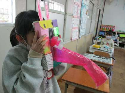 1年図画工作科「にょきにょきとびだせ」の学習をしました。