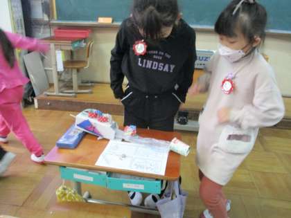 傘袋に絵をかいたり、色紙をつけたり、入れ物に工夫をしたりと、