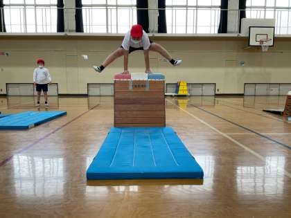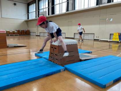 2・4年生が4段の跳び箱にチャレンジし続け、跳べるようになりました。子どもたちからは「おめでとう!」「やったー!」と声を掛け合う姿が見られました。