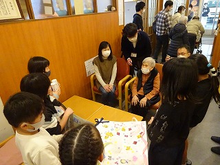 放課後に代表の児童が施設に届けました。受け取った利用者の方は心から喜んでくださり、子どもたちも大満足の様子でした。直接お会いすることはなかなか難しい状況の中で今できる形で1年間すてきな交流の機会をいただけたことは大変うれしく、これからも地域とのつながりを大切に、学習を進めていきたいと考えています。
