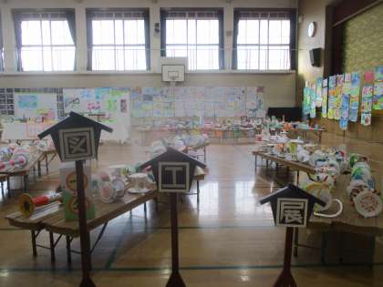 3月2日本日・3月3日と図工展を体育館で開催しています。