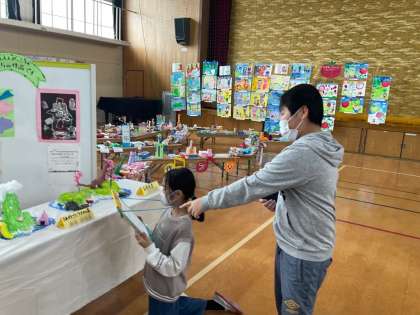 また、同じタイミングで鑑賞をしていた学年に作品紹介をすることができました。自分たちの作品を見てもらえて、とても嬉しそうでした。