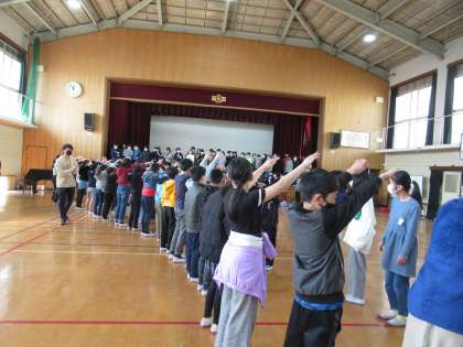 花道をつくって、体育館から6年生を送り出すときの様子です。卒業する6年生も、送り出す5年生も、とてもいい表情をしていたのが印象的でした…。