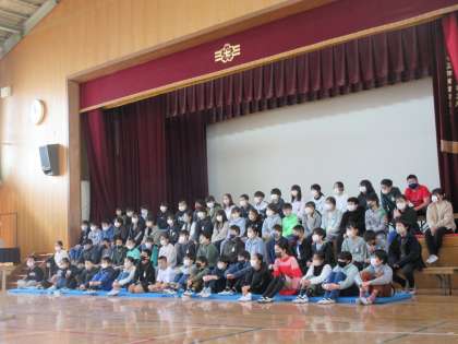 『6年生を送る会』で、一足早く在校生に卒業のお祝いをしてもらいました。