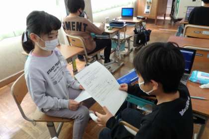おやつの内容や取り過ぎが、自分たちの体に良くないことや、1日200キロカロリーを目安にすること、食事との間を2時間あける、甘いもの・油や塩分を多く含むものは控えることなどを学びました。その後、ロイロノートを使って実際におやつの内容を考えました。
