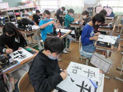 4年最後の書写の学習で、毛筆で「平和」と書きました。