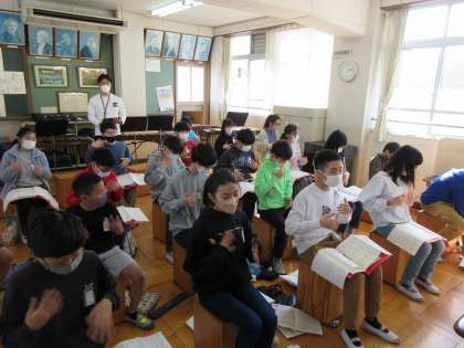 小学校最後の音楽の授業では、手話あり、合奏あり、合唱ありの音楽ライブで1年間の集大成を見せてくれました。