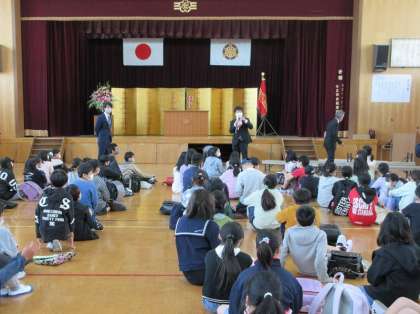 初日から早速、入学式に向けて体育館での長椅子並べや入学式での代表の言葉など、活躍してくれている児童もいました。