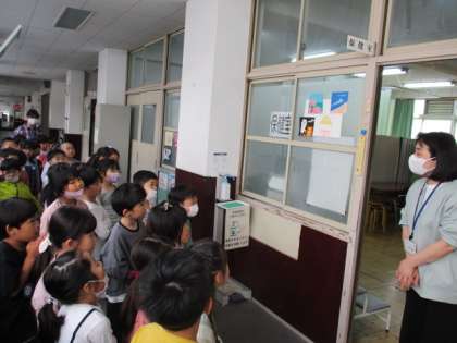 今日は困ったときに行く場所として、保健室と職員室を探しに行きました。