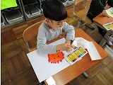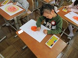 図画工作科「おひさま にこにこ」の学習で、クレパスを使って、自分だけのおひさまを描きました。初めての図画工作科でわくわく楽しく描くことができました。