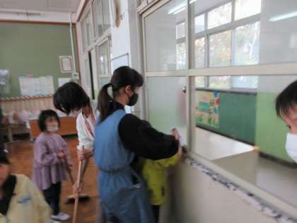 6年生は交代で1年生の教室に掃除のお手伝いに行っています。