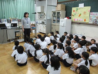 1年生で最初の身体計測をしました。保健室の先生のお話を静かに聞くことができました。また、歯みがきの仕方について動画で学習しました。