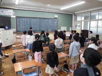 1年生の教室から校歌を歌う声が聞こえてきたので、カメラを持って急いで教室に行ったのですが、ちょうど終わったタイミング…。