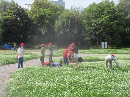 今日は、4年生が理科の学習で、近くのビオトープに行きました。
