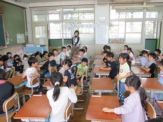 生活科の学校探検の様子です。2年生がしっかりリードしてくれたおかげで、みんな「楽しかった!」と楽しく学習できました。学習のふり返りでは、1年生もしっかりと感想を伝えることができました。最後に2年生からアサガオの種をプレゼントとしてもらいました。お家でぜひ育ててみてください。