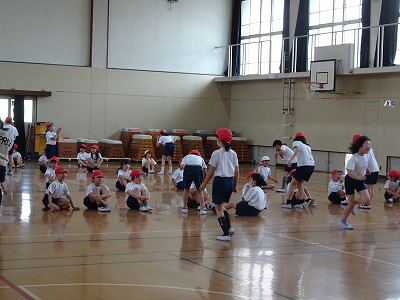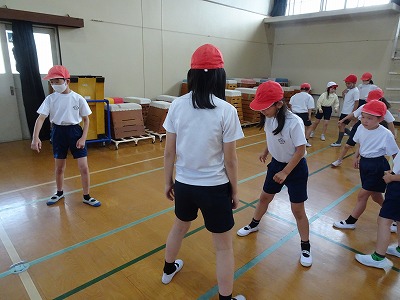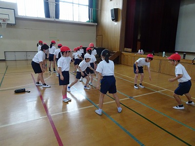 今日は2年生といっしょに合同で体育をしました。前半は、2年生に反復横跳びのやり方を教えたり、数を数えてあげたりしました。後半はじゃんけんゲームをして楽しみました。5年生らしく、2年生をやさしくサポートしている姿が素敵でした。