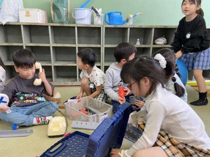 中間休みに1年生を教室に招待し、一緒に遊ぶことができました。さくら学級の子どもたちも1年生の子どもたちに知育おもちゃや、ボール遊びを教えてあげ、楽しく過ごすことができました。