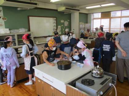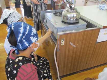 家庭科の授業でガスこんろの安全な使い方を学び、お茶を入れる学習をしました。初めての実習でしたが、安全にグループで協力しておいしくお茶を入れることができました。茶葉の量やお湯の温度、蒸らす時間でお茶の濃さが変わるということも知ることができました。