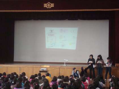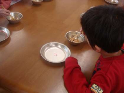 1月23日から27日は給食週間です。23日(月)に児童朝会があり,給食委員会から紙芝居の発表がありました。中間休み・昼休みは豆つかみ大会が行われました。上手にお箸を使いながら豆をつかんでいる子ども,なかなかうまくつかめない子どもなど様々でした。給食のことについていつも以上に考えてほしいです。そして,感謝の気持ちを忘れず,しっかり食べてほしいと思います。