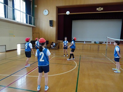 体育科では、ソフトバレーボールの学習をしています。チームでパスの練習をしたり、試合を楽しんだりしています。まだパスがうまくつながらないチームも多いようです。声をかけて積極的にボールを取りに行けるといいですね。