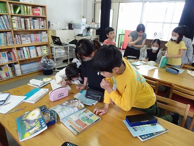 今日は図書館オリエンテーションを行いました。図書館のきまりについて確認したり、いろいろな本を使って調べ学習をしたりしました。様々な分類の本に親しんでほしいです。