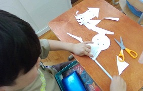 ハサミの練習をしました。 ハサミの奥で切るように「パックンパックン。」と動かし、ライオンやいか・タコをつくりました。来週は練習を活かして飾りを作ります。みんな楽しみにしています。