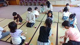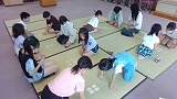 決まり字の札4枚をならべ、集中的に覚えた後、枚数を少しずつ増やし、最後は、橙の札全部を並べて勝負しました。1枚でも多く覚えられるように一歩ずつ頑張っています。