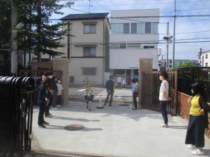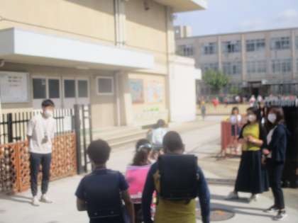 正門前には、6年生も一緒にあいさつをしてくれる姿も。