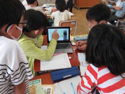 今日は、岡崎公園周辺の文化施設や公共施設の多い地域について学習しました。美術館や動物園など施設名に「京都市」がついているものが多いことに気付くことができました。「京都市立七条第三小学校……。ぼくたちの学校にも、京都市がついているね!」…自分たちが通う学校や近くにある下京図書館も、京都市の公共施設であることが分かりました。