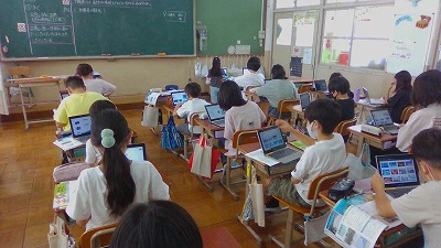 社会科「あたたかい土地のくらし」の学習では、沖縄県の自然を生かした観光についてタブレットも使用しながら調べました。観光産業がさかんですが、その一方で環境問題が起こっていることにも気づくことができました。調べていると、沖縄県に行きたくなりますね。