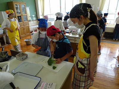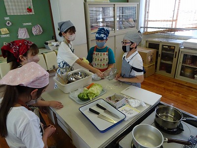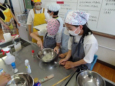 5年生になり、3回目の調理実習です。今回はゆで野菜のサラダに挑戦しました。前回よりも手際よく作っている姿が見られました。今回は手作りのドレッシングも作りました。みんなで作ると楽しいですね。