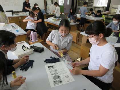 今日は私たちが吸う空気・吐く空気を機体検知管を使って調べました。