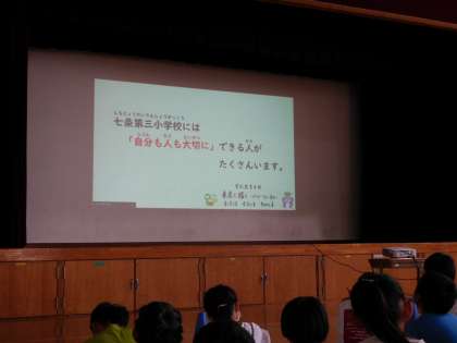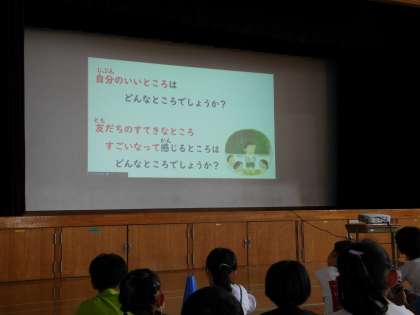 校長先生のお話では、「ぼくはなきました」という絵本の読み聞かせから、自分にも友だちにも「いいところ」がたくさんあることに気づきました。