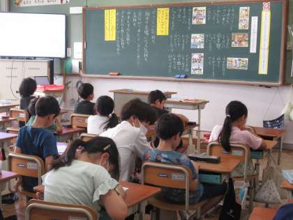 「足りない気持ちは何だろう」という教材で、お互いに気持ちよく過ごすことについて考えました。教室での出来事・友だちの家に遊びに行ったときのこと・公共図書館でのひとこまなど、日常にありがちなさまざまな場面の様子から、困っている人は誰なのか、また、その人はどのような気持ちになっているのかについて話し合いました。