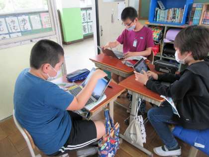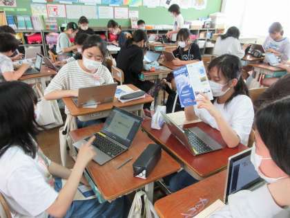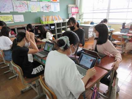 先週の修学旅行で体験したこと・感じたこと・さらに調べたことをロイロノートスクールを使って、グループごとにまとめました。