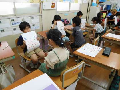 友達に問題を出したり、友達の問題に答えたりすることを楽しみました。