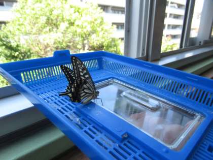 最後の1匹が、成虫になって外の世界へ飛び立っていきました。5月の連休明けの頃から、数多くのモンシロチョウとアゲハチョウが、3年生の教室から大空へ飛んでいきました。