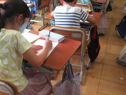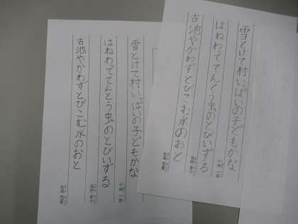 先週の書写の時間には、鉛筆で書く硬筆書写に取り組みました。国語科で学習した俳句を題材に、手本を見ながら丁寧に書きました。