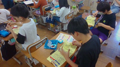 前回のボタンつけに続き、今日はなみぬいに挑戦しました。だんだんと慣れてきたようで、まっすぐ縫えて満足そうな子どもたちもいました。