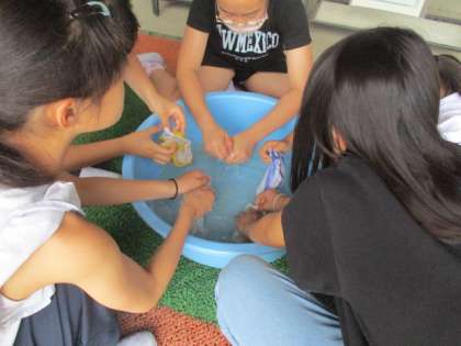 タオルや靴下についた汚れがしっかりと落ちるように洗い方を工夫している子もいました。